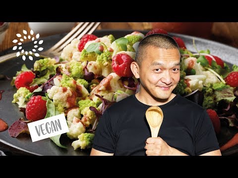 Dieser Rohkost-Salat mit Blumenkohl, Romanesco und Himbeeren bekommt durch das Dressing aus Cashewmus, Himbeeren und Datteln eine besondere, ...